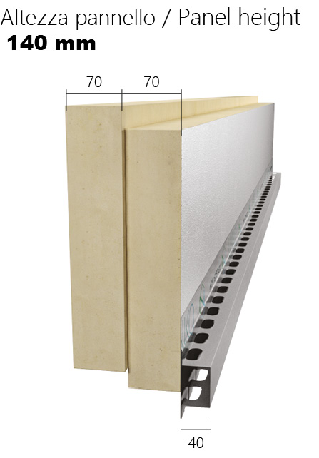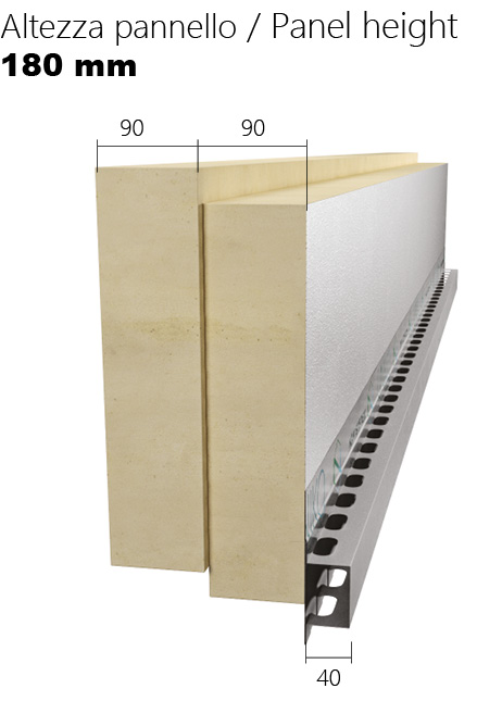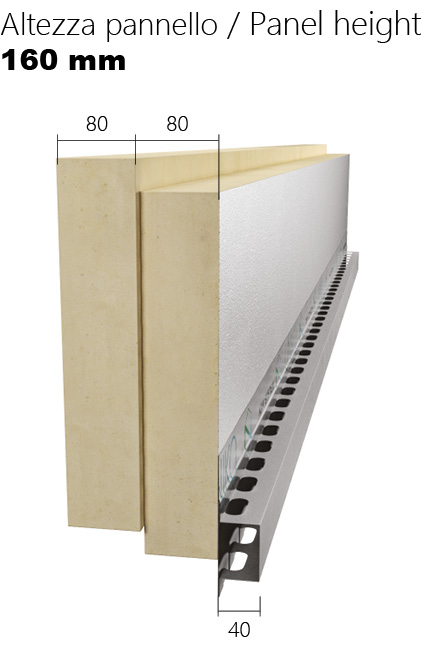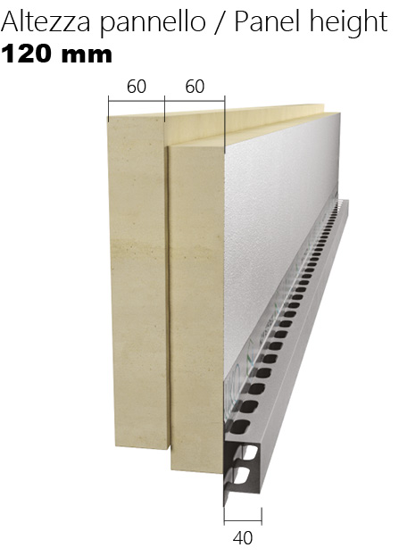 | PIR - PUR Spessore isolante (mm) | 60 | 80 | 100 | 120 | 140 | 150 | 160 | 180 | 200 |
